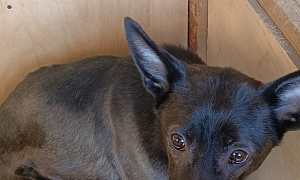 отлов 23.01.2024 Октябрьская, 239/3, кобель кличка Вовчик, черно-чепрачный, 6 лет, 12.02.2024 возвращено на прежнее место обитания
