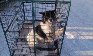 отлов 28.01.2024 Моховая падь, ДОС 21, кобель кличка Алтай, бело-черный, 4 года, 17.02.2024 возвращено на прежнее место