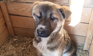 отлов 20.01.2024 Зазеркальная, 26, сука кличка Жужа, серый с черным подпалом, 6 лет, 09.02.2024 передано новому владельцу