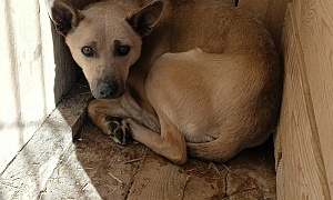 отлов 23.01.2024 Октябрьская, 239/3, сука кличка Кенга, коричневый, 5 лет, 12.02.2024 возвращено на прежнее место обитания