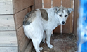 отлов 12.01.2024 Моховая Падь, тур.база Динамо, сука кличка Белка, белый, 1 год, 01.02.2024 передано новому владельцу
