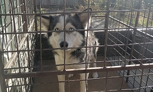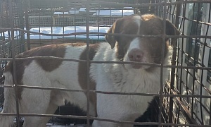отлов 02.11.2023 Новотроицкое шоссе, 2 км., кобель кличка Бугай, белый с черным, 3 года, 13.11.2023 передано новому владельцу