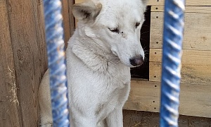 отлов 04.11.2023 Шимановского, 125, сука кличка Вьюга, белый, 4 года, 24.11.2023 возвращено на прежнее место обитания