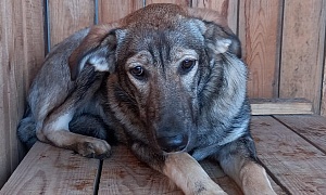 отлов 27.10.2023 Новая, 8, сука кличка Акула, серо-рыжий, пестрый, 4 года, 12.11.2023 передано новому владельцу