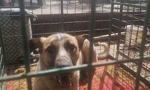Отлов 01.06.2023 Мясокомбинат-Садовое, сука кличка Лукерья, бежевый, 7 мес., 21.06.2023 передача новому владельцу
