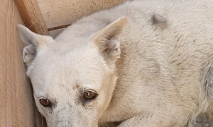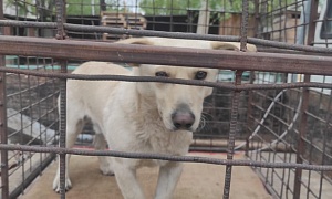 Отлов 07.06.2023 Верхнеблаговещенское, Ленина, 1, сука кличка Акса, белый, 2 года, 27.06.2023 возвращено на прежнее место обитания