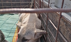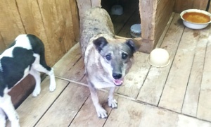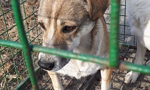 сука Шаня окрас Бежево - серый, переносица черная ,2-3 года.,отлов 20.10.2022, возврат на прежнее место обитания 09.11.2022