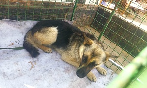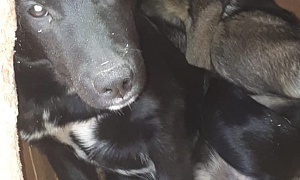 сука Глаша,Черный, с рыжим подпалом, рыжая маска,1 год,отлов 21.09.2022, возврат на прежнее место обитания 11.10.2022