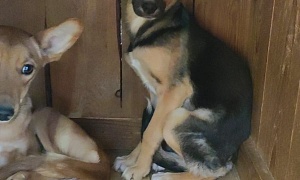 сука Майка,Рыже - черный, черные уши,2-3 года.,отлов 23.09.2022, возврат на прежнее место обитания 13.10.2022