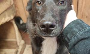 Кобель Фира чёрный, белое пятно на груди, 7-8 месяцев, отлов 12.05.2022, возврат на прежнее место обитания 01.06.2022