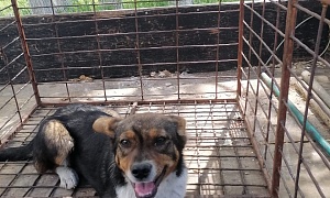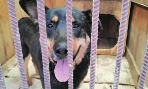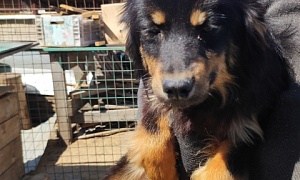 Сука Айка чёрный с рыжим подпалом, 4-5 месяцев, отлов 29.04.2022, возврат на прежнее место обитания 19.05.2022