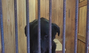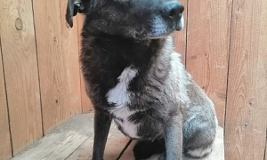 Сука Труша, чёрный, белое пятно вокруг носа, 3-4 года, отлов 11.05.2022, возврат на прежнее место обитания 31.05.2022