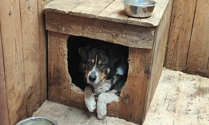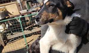сука Дося, Черно - рыже - белый, на задних лапах белые "носочки",1-2 года,отлов 21.06.2022 возврат на прежнее место обитания 11.07.2022