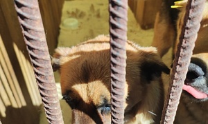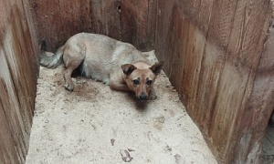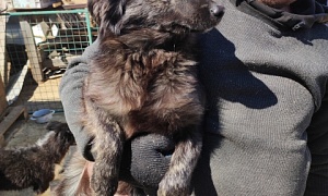 Сука Чайна шоколадно-коричневая, 4-5 месяцев, отлов 29.04.2022, возврат на прежнее место обитания 19.05.2022