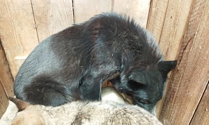 Сука Дея, чёрный с рыжими лапами, 4-5 месяцев, отлов 29.04.2022, возврат на прежнее место обитания 19.05.2022