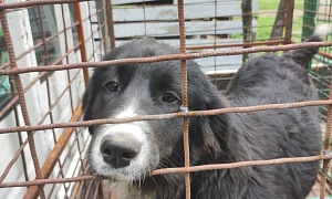 Кобель Шафик, чёрный, грудь белая, 7-8 месяцев, отлов 12.05.2022, возврат на прежнее место обитания 01.06.2022