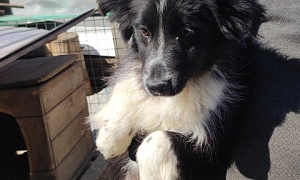 кобель Хася, Бело - черный, лапы песочно - рыжие,2-3 года,отлов 15.06.2022 возврат на прежнее место обитания 05.07.2022