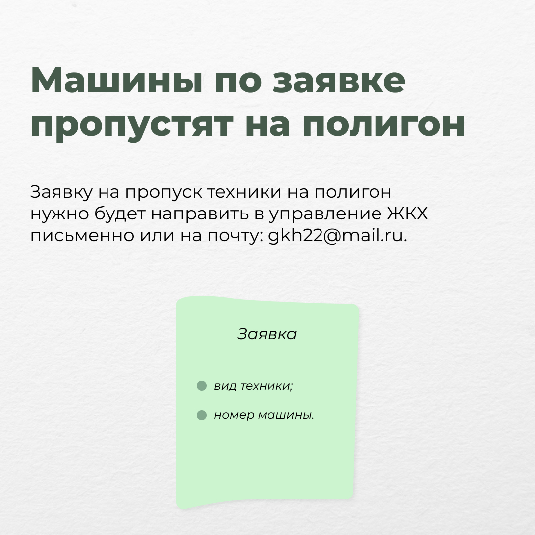 Заявка на пропуск машины на полигон