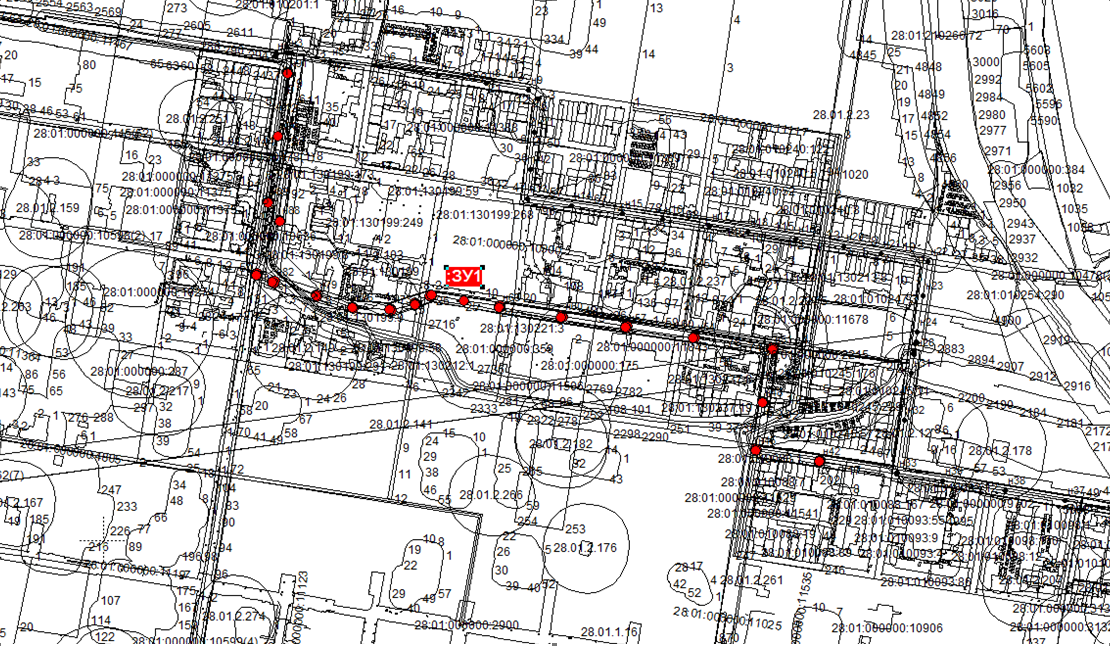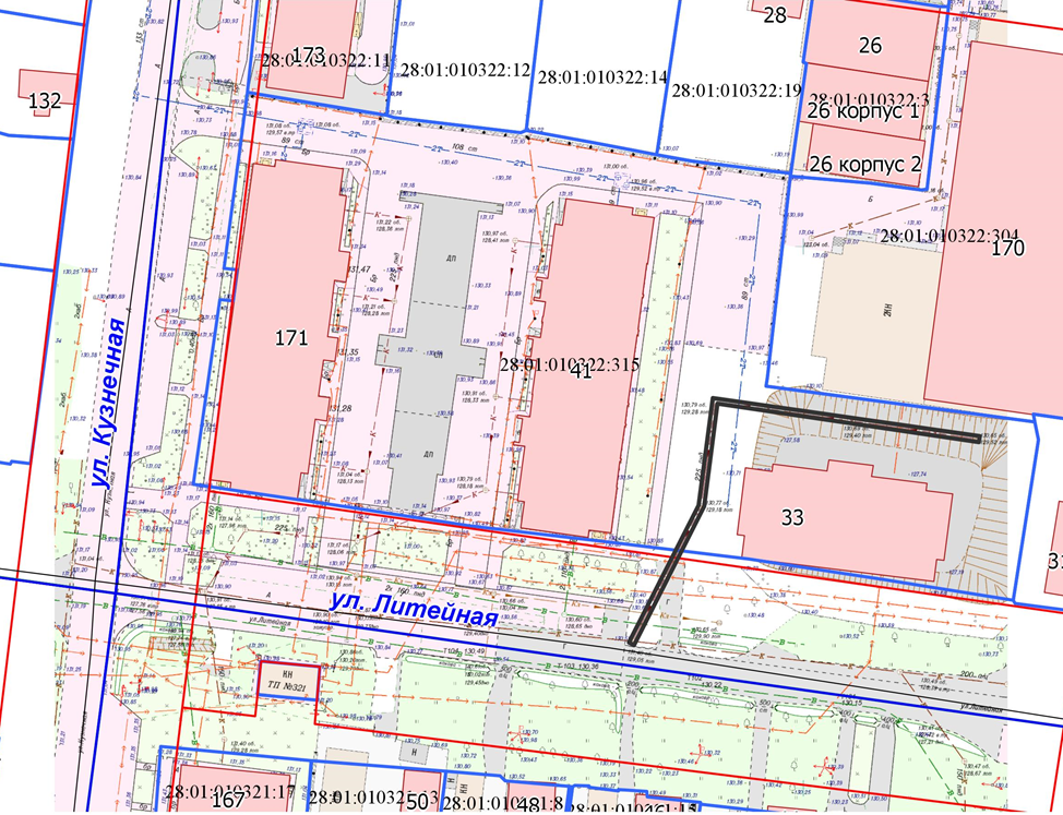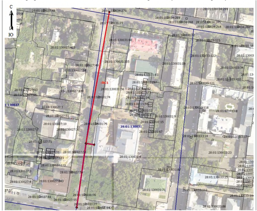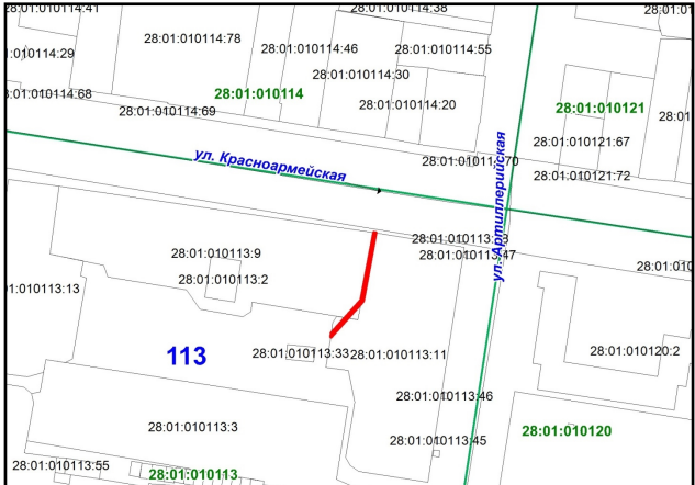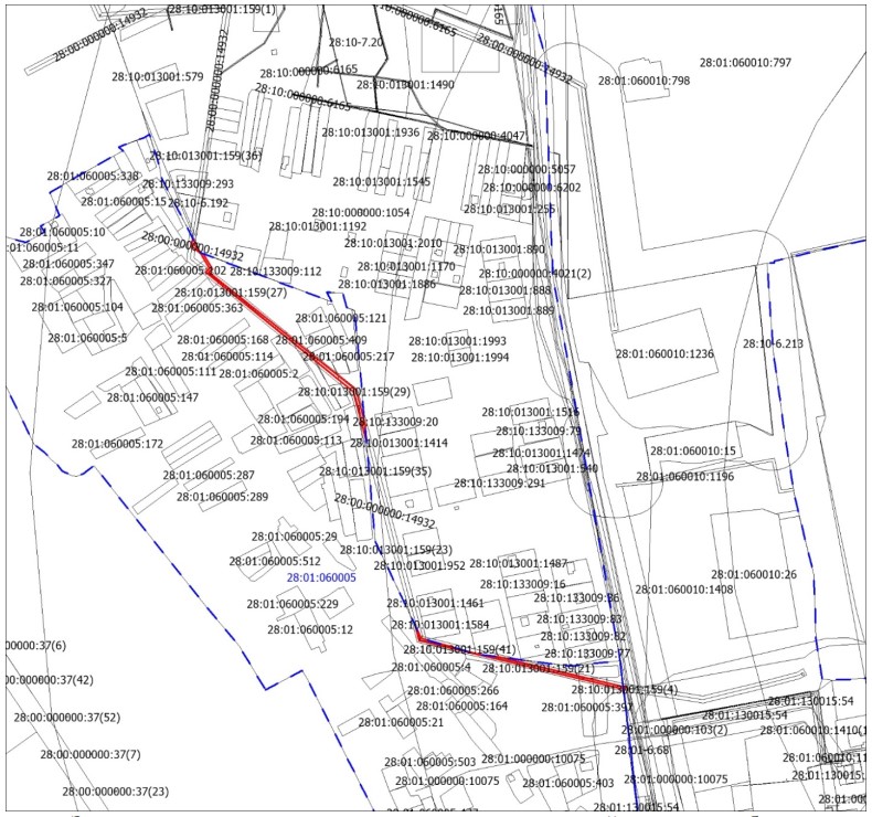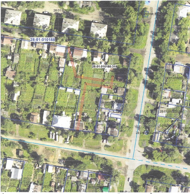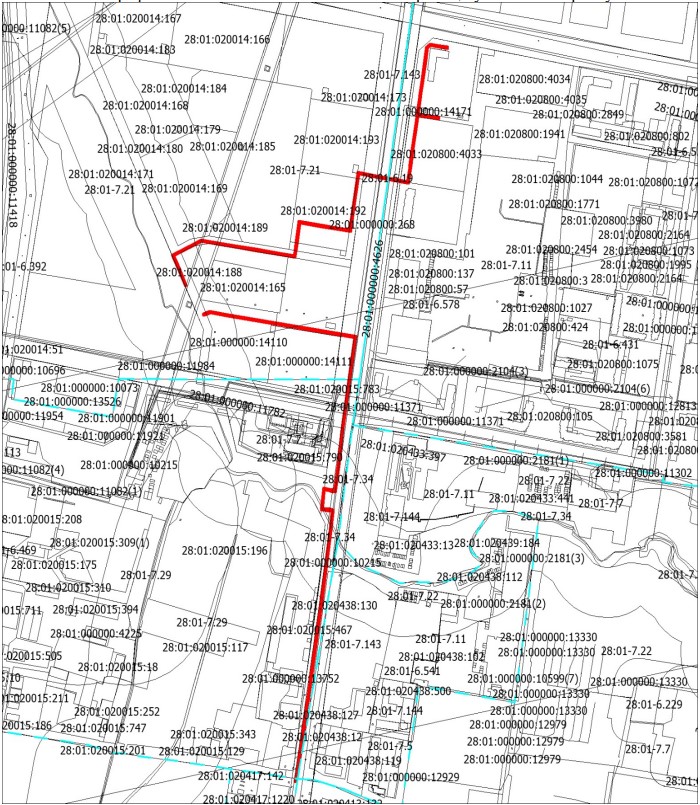 Федерации администрация города Благовещенска информирует о рассмотрении ходатайства ООО «АКС» об установлении публичного сервитута для размещения сети водоотведения в отношении:1. земельного участка с кадастровым номером 28:01:010322:315, расположенного в квартале 322;