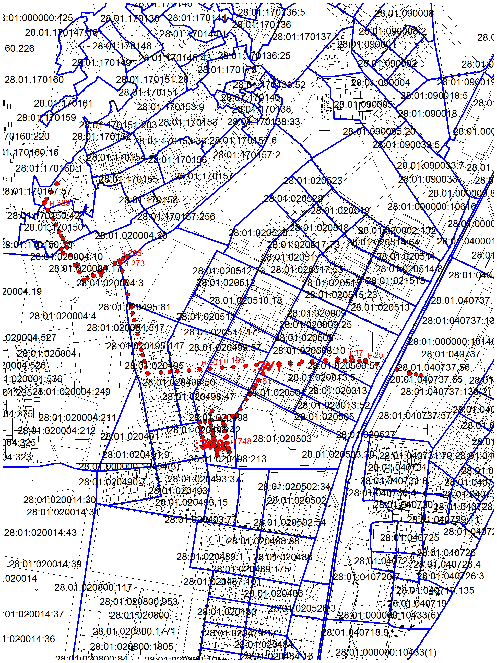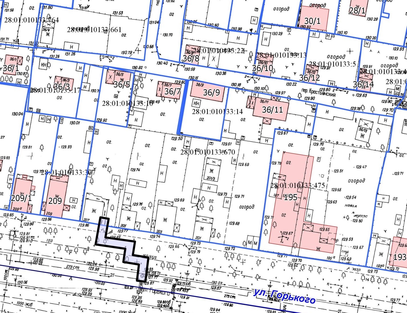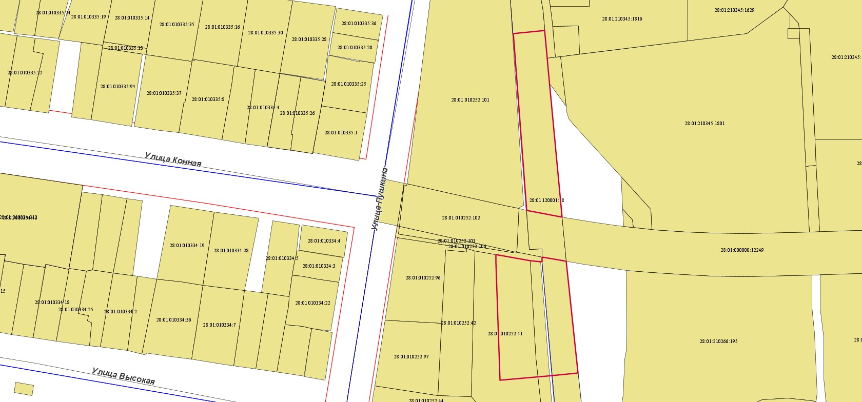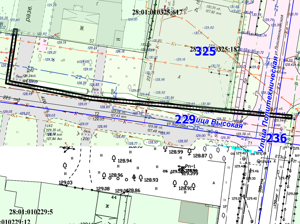 2. земельного участка с кадастровым номером 28:01:010295:249, расположенного по ул. Высокая, 143, в квартале 295;