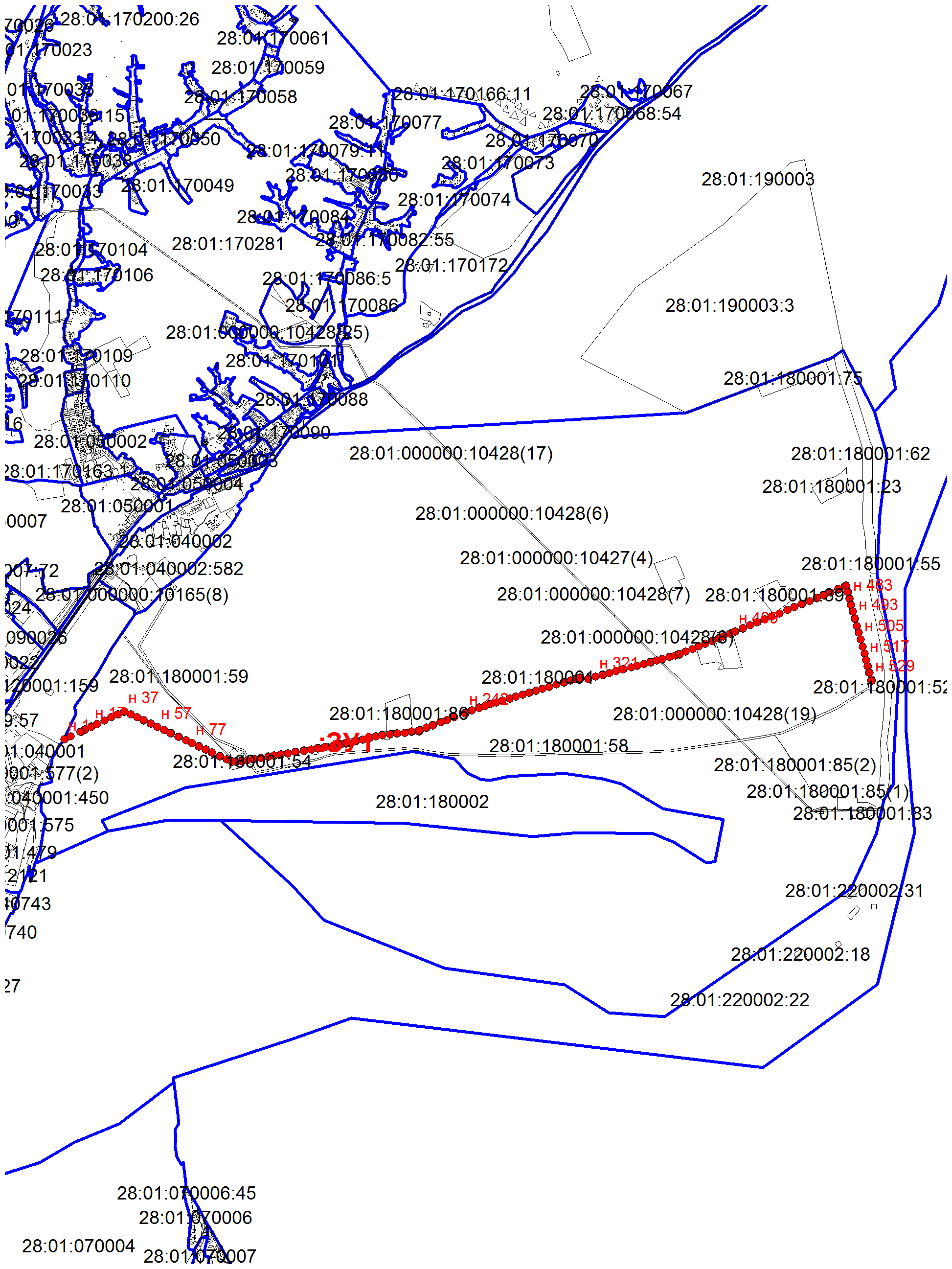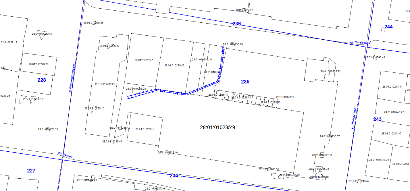 - 28:01:000000:10478, расположенный в кварталах 231, 256;
