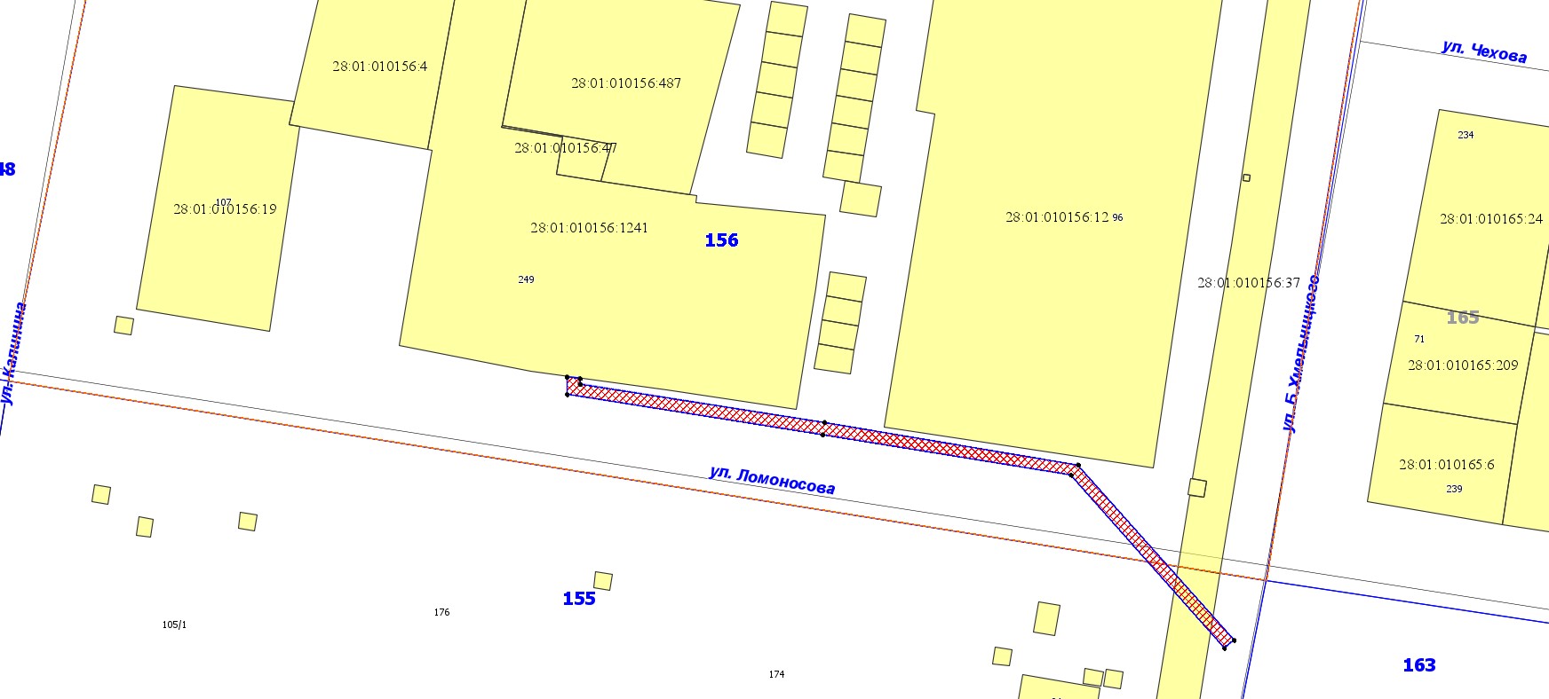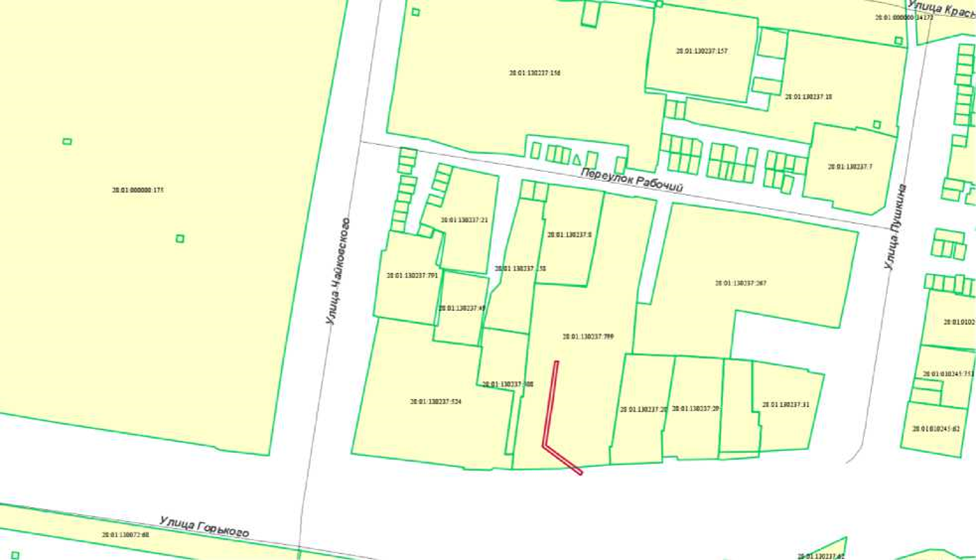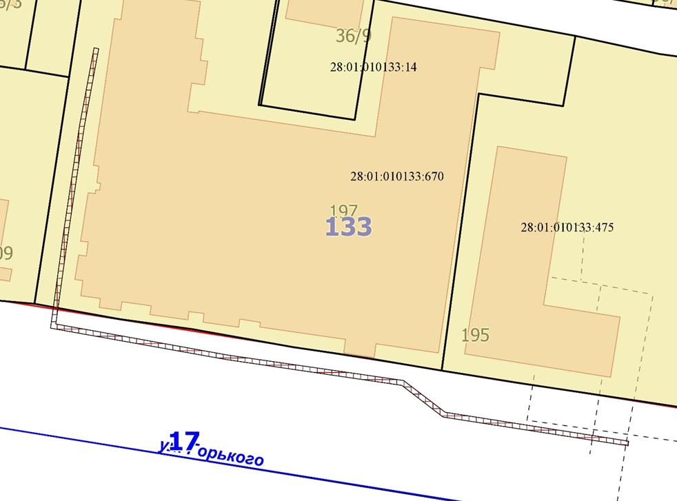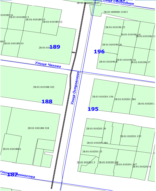 1. земельного участка с кадастровым номером 28:01:010167:447, расположенного по ул. Свободная, 197, в квартале 167;