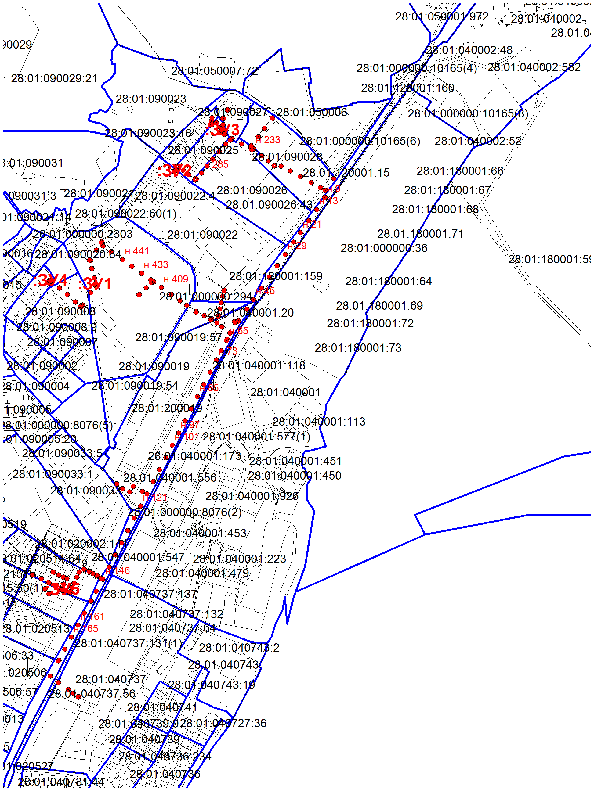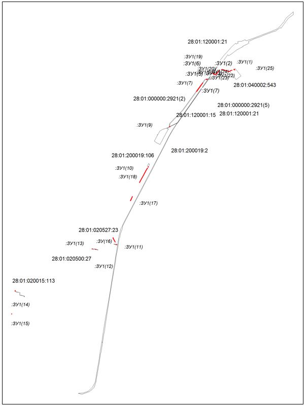 2. земель, расположенных в кадастровых кварталах: 28:01:010431, 28:01:010109, 28:01:030007, 28:01:030005, 28:01:030003, 28:01:030006.