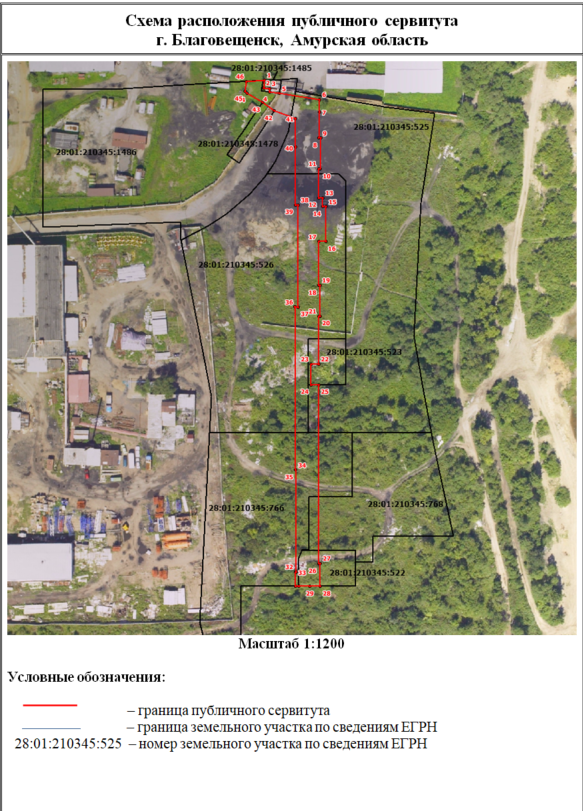 В соответствии с п. 3 ст. 39.42 Земельного кодекса Российской Федерации администрация города Благовещенска информирует о рассмотрении ходатайства АО «ДРСК» об установлении публичного сервитута для размещения линии электропередач ВЛ-35 кВ от ПС «ПТФ» до ПС «Моховая» в отношении: