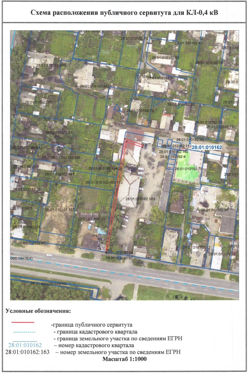 В соответствии с п. 3 ст. 39.42 Земельного кодекса Российской Федерации администрация города Благовещенска информирует о рассмотрении ходатайства АО «ДРСК» об установлении публичного сервитута для размещения линии электропередач ВЛ – 35 Центральная – Западная 5,3 км в отношении земельных участков с кадастровыми номерами 28:01:000000:414, 28:01:030443:435, 28:01:030443:599, 28:01:020444:44, 28:01:020444:46, 28:01:020021:260, 28:01:020021:240, 28:01:020021:834, 28:01:020021:12, 28:01:020021:13.