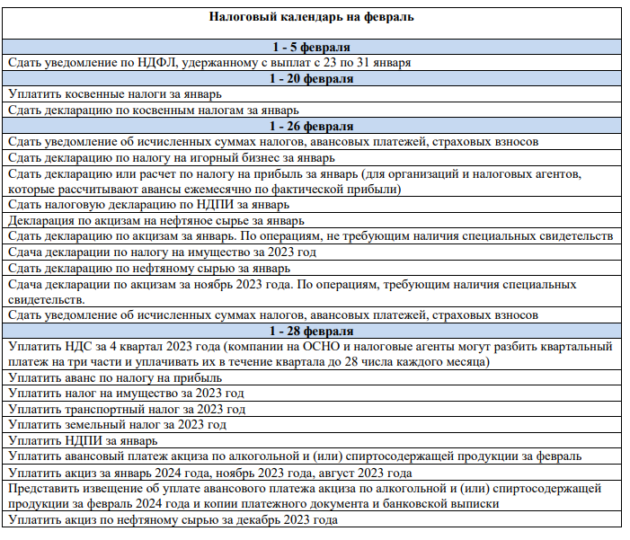 Налоговый календарь на февраль