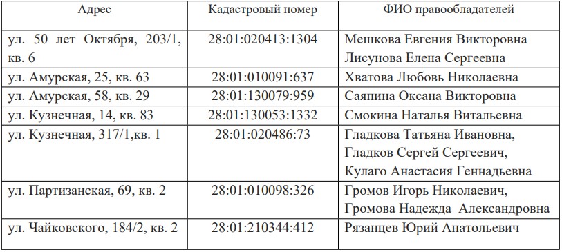 Администрацией города Благовещенска, в отношении ранее учтенных объектов недвижимости выявлены в качестве правообладателей, владеющих данным объектом недвижимости на праве собственности:
