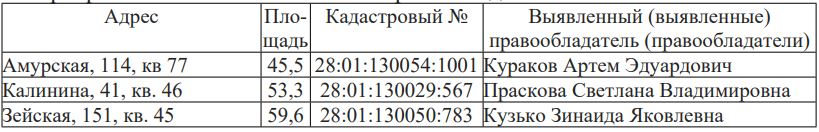 В соответствии со статьей 69.1 Федерального закона от 13.07.2015 № 218-ФЗ «О государственной регистрации недвижимости» администрацией города Благовещенска, в отношении ранее учтенного объекта недвижимости - квартиры выявлены в качестве его правообладателя: