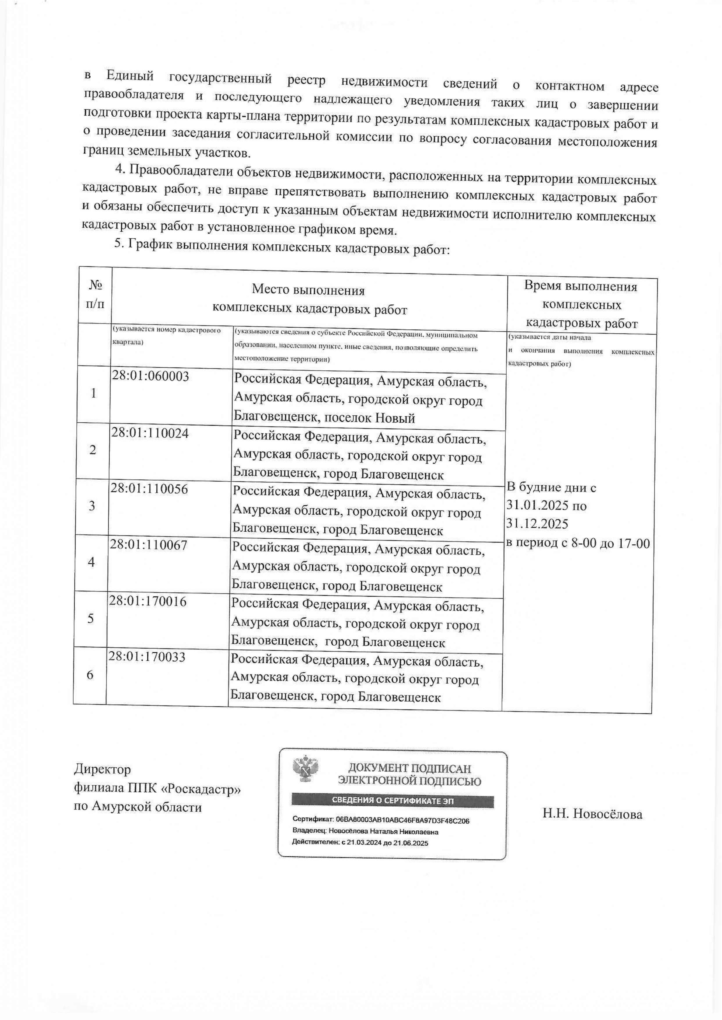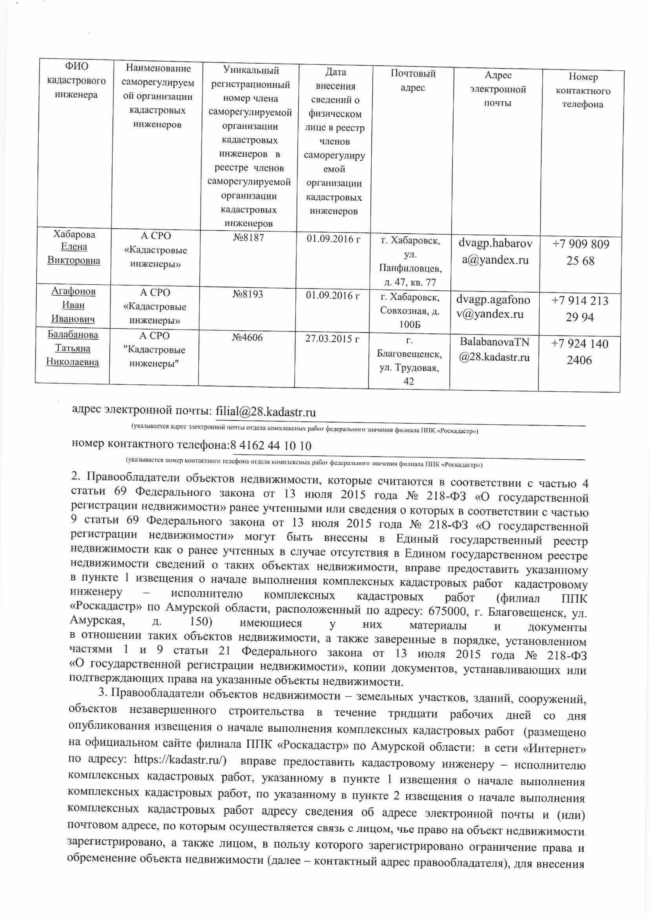 Извещение о начале выполнения кадастровых работ в период с 01.01.2025 г. по 31.12.2025 г.