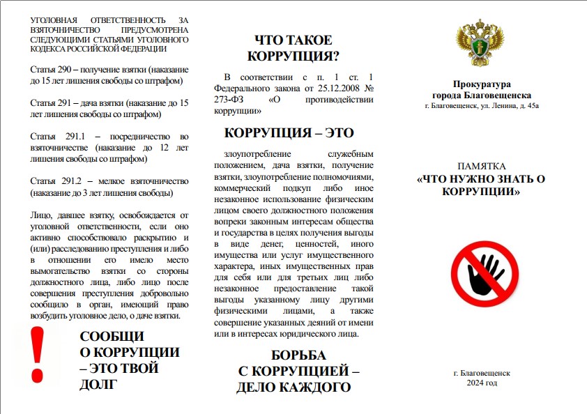ПАМЯТКА «ЧТО НУЖНО ЗНАТЬ О КОРРУПЦИИ»