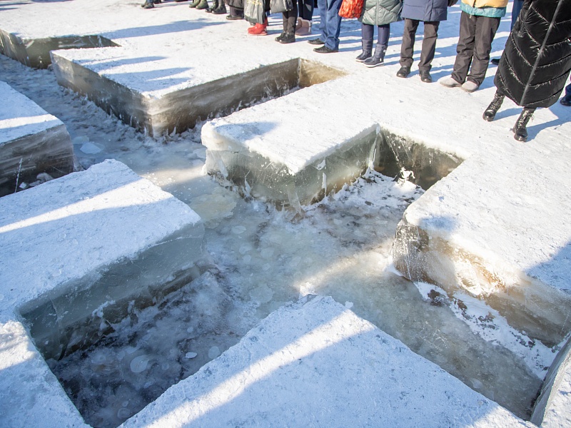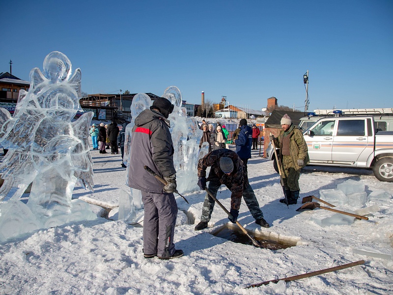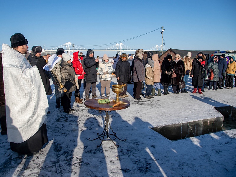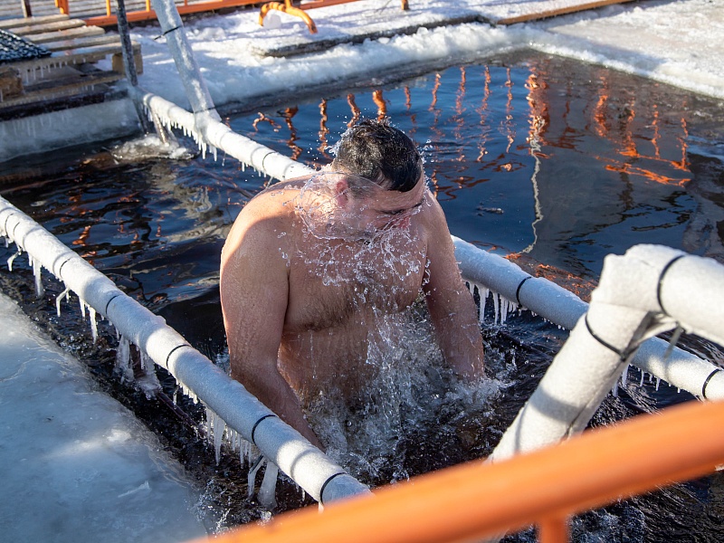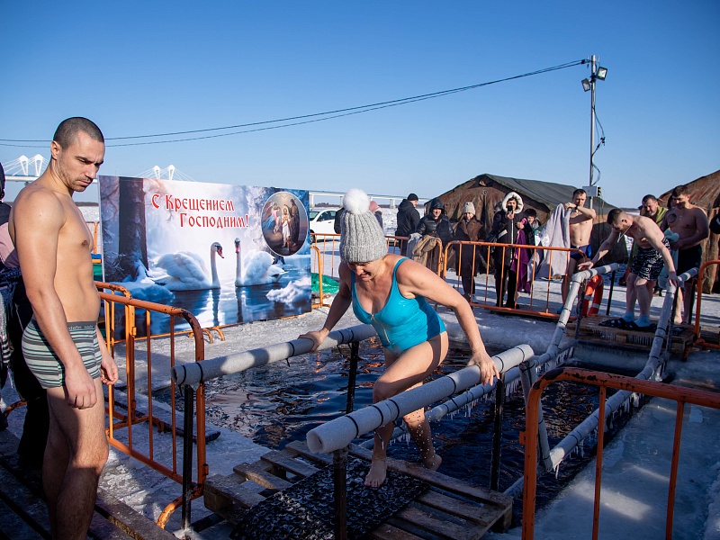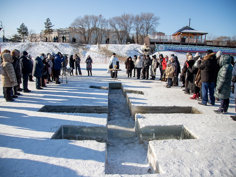 Благовещенцы окунулись в прорубь на Крещение