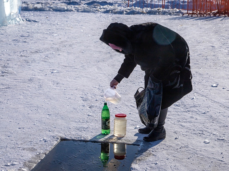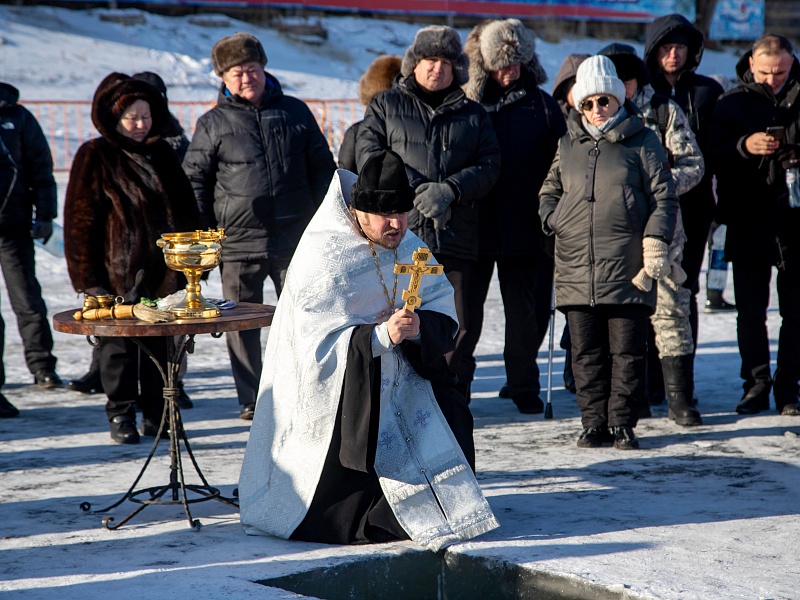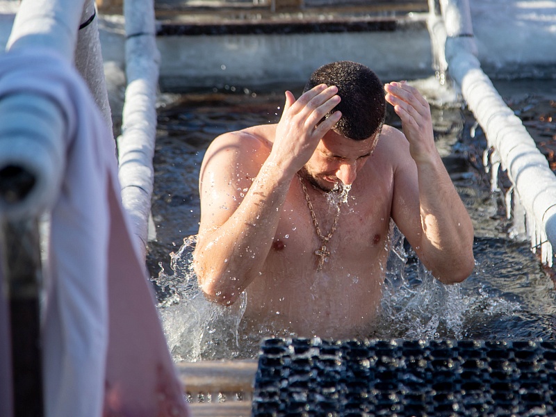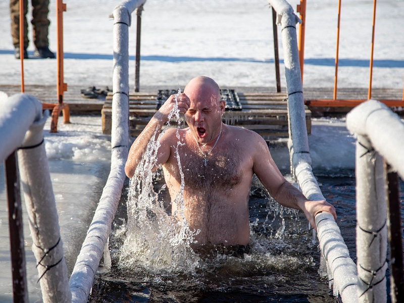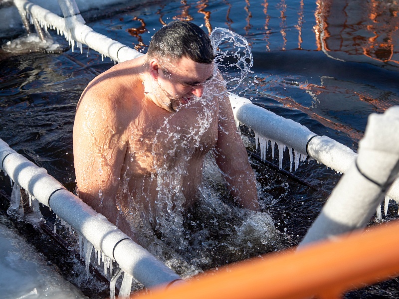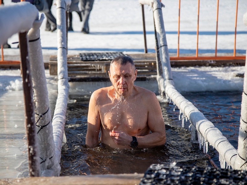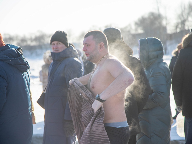 Благовещенцы окунулись в прорубь на Крещение