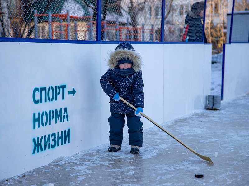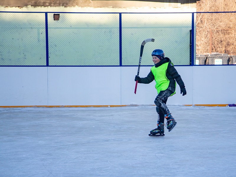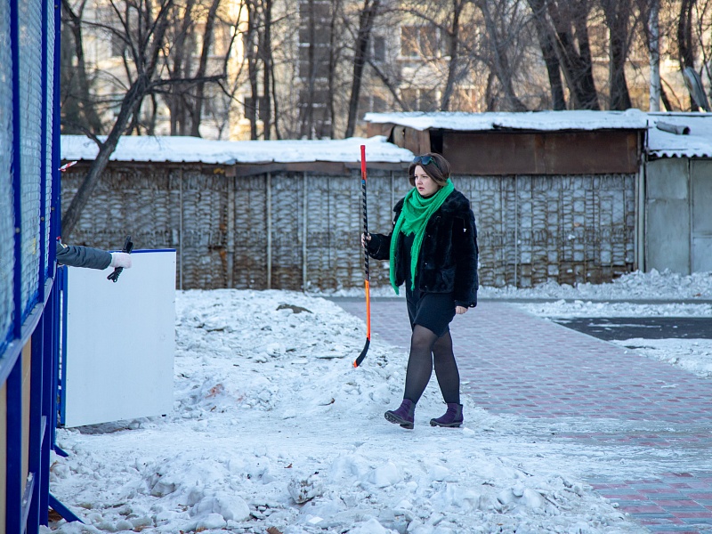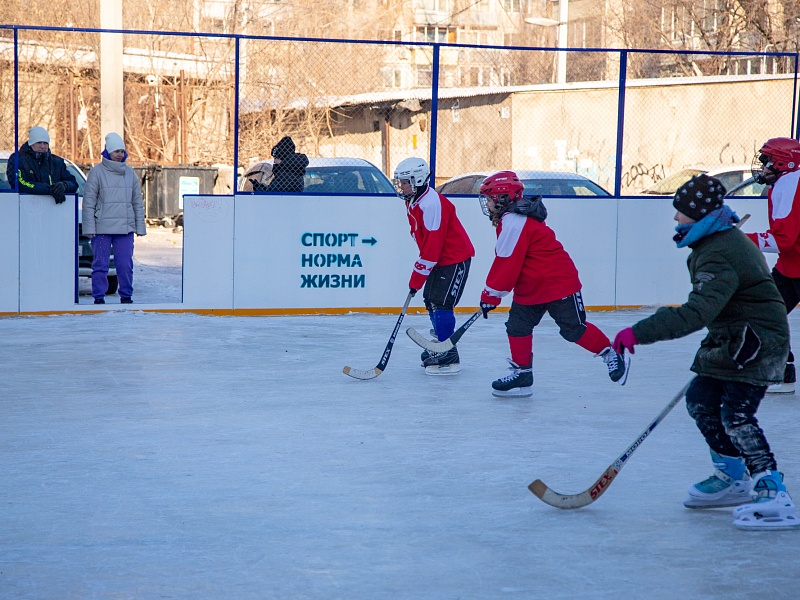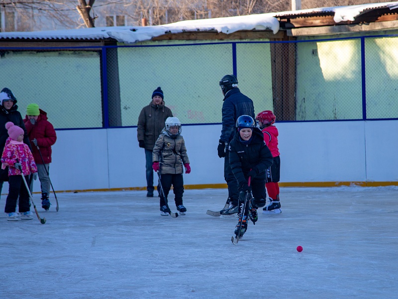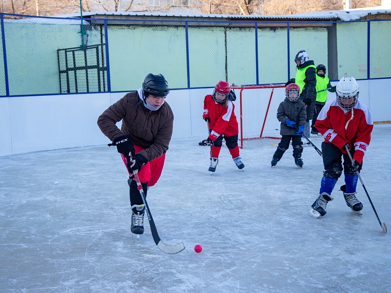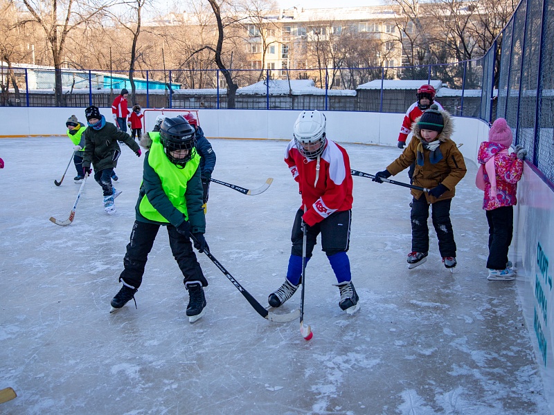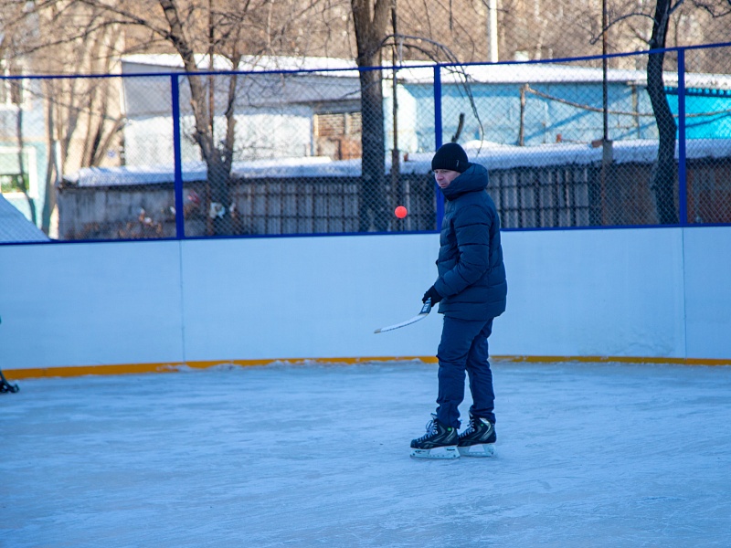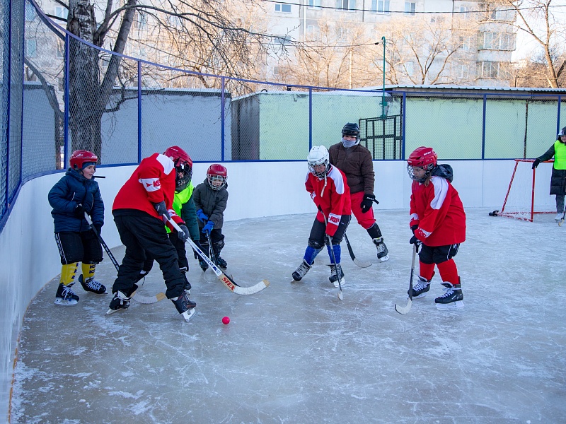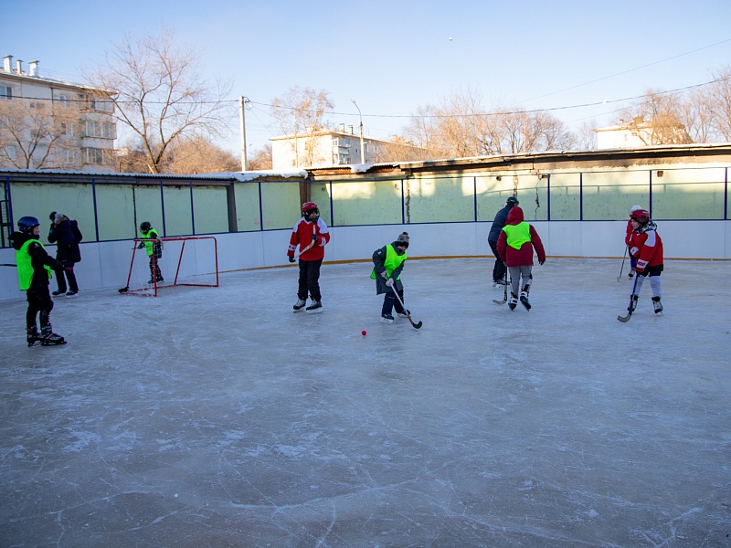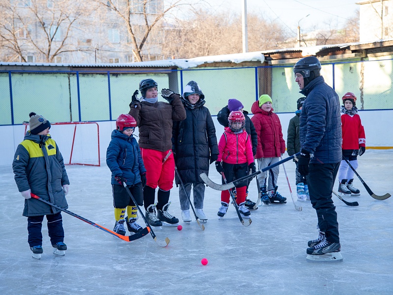 Хоккею с мячом учили ребят из благовещенского двора на Зейской