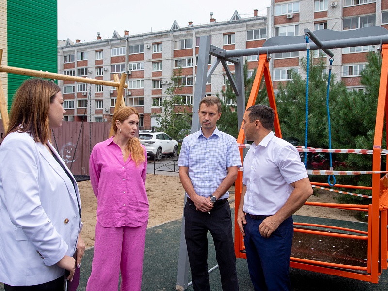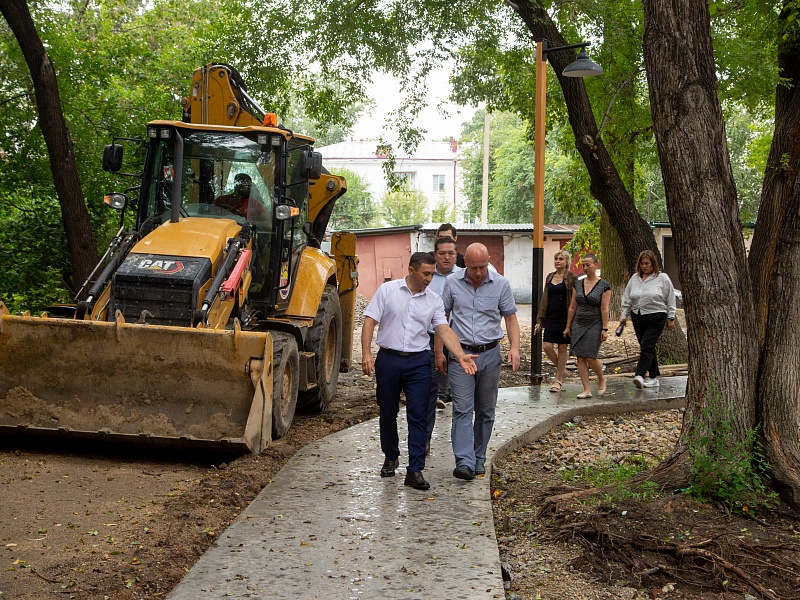 Мэр Олег Имамеев проконтролировал работы по благоустройству сквера водников и дворов