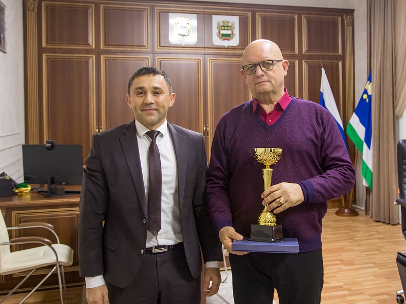 Олег Имамеев вручил награду наставнику месяца Евгению Пушкареву