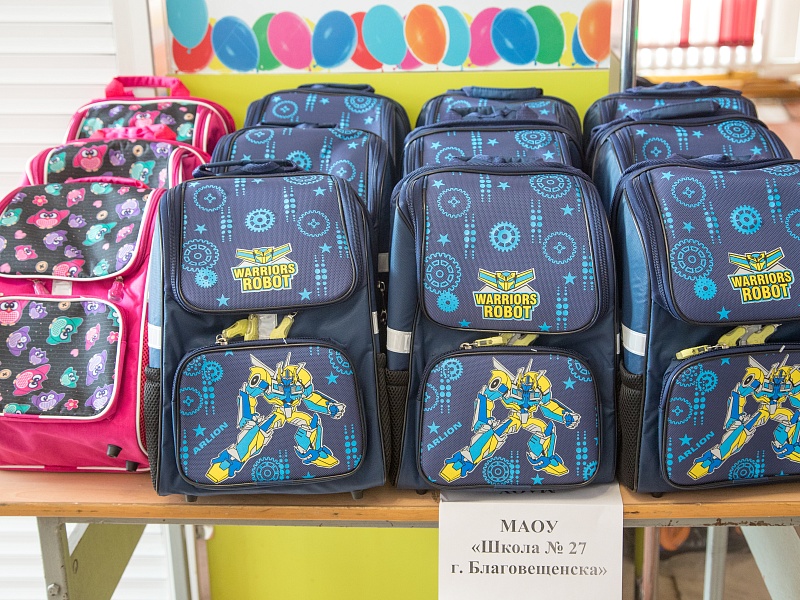 Почти 400 благовещенских первоклассников в Благовещенске получили к школе ранцы с канцелярией