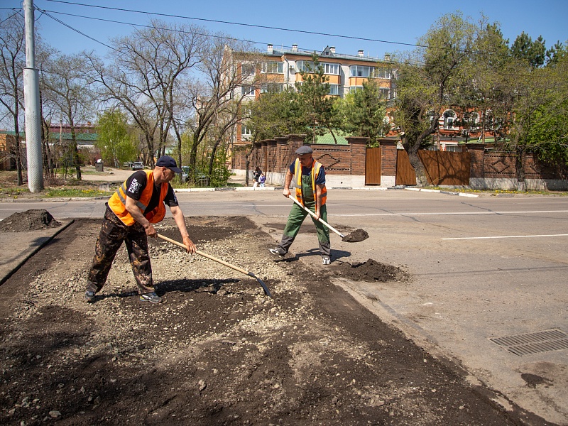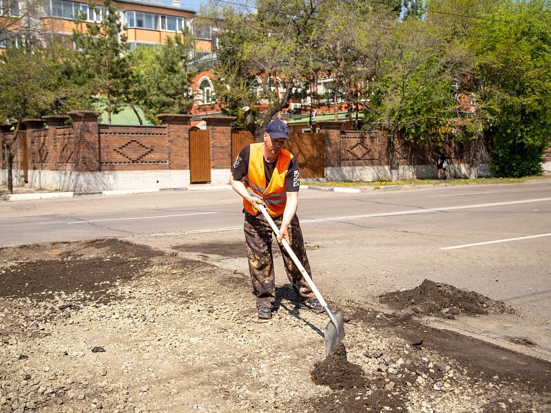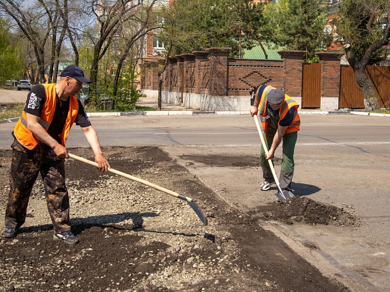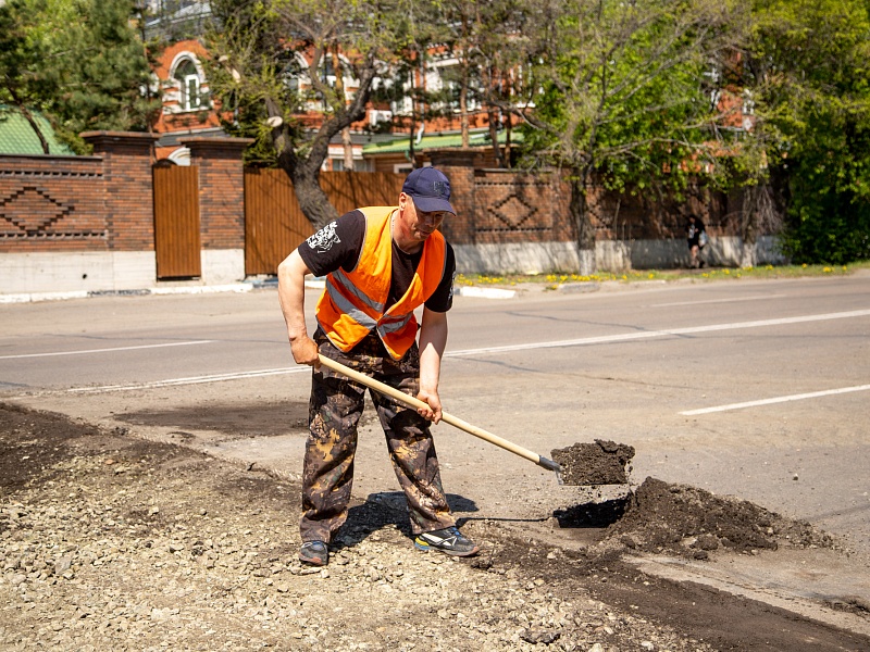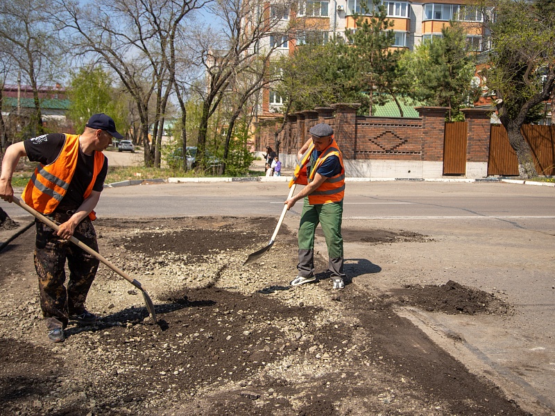 В Благовещенске ГСТК приступил к ямочному ремонту