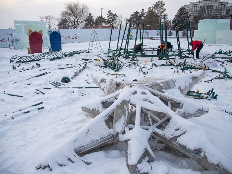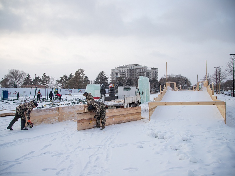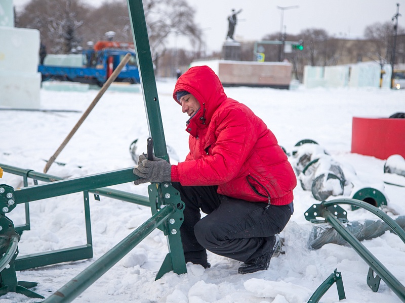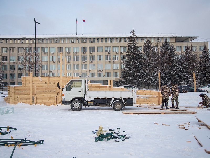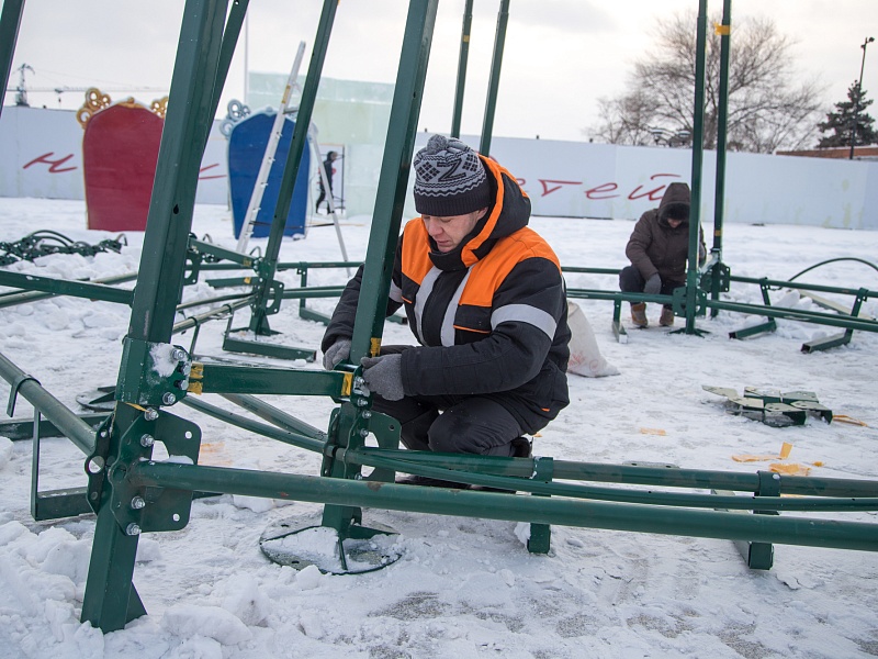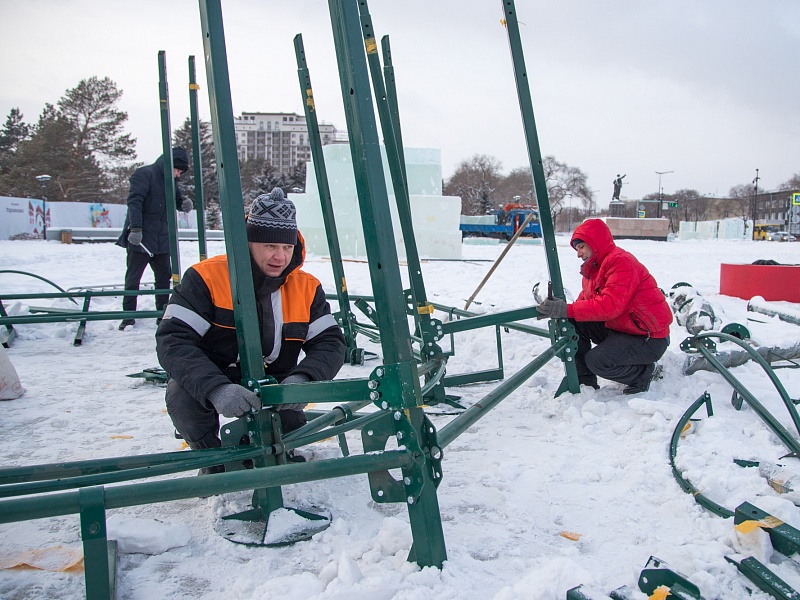 В Благовещенске приступили к монтажу главной новогодней ели