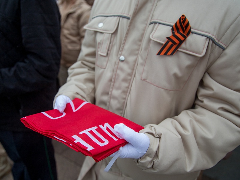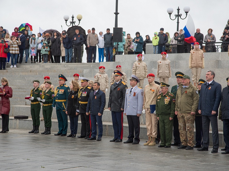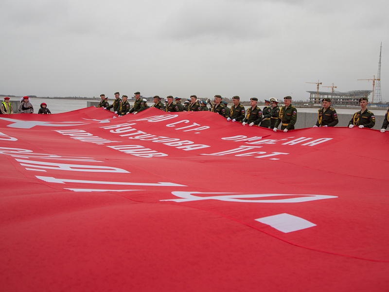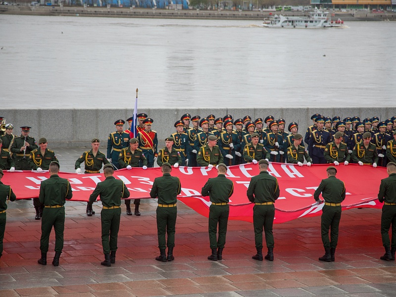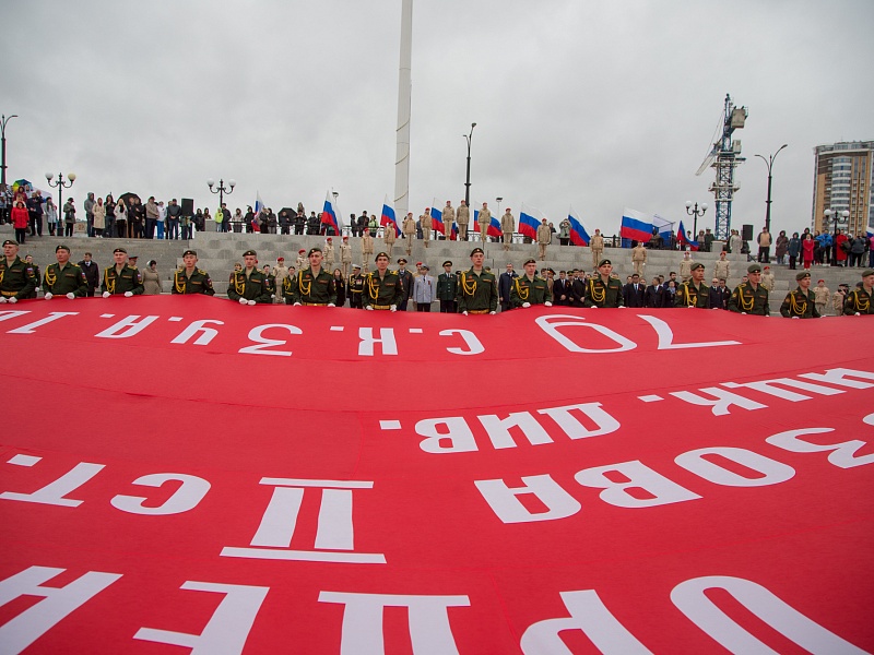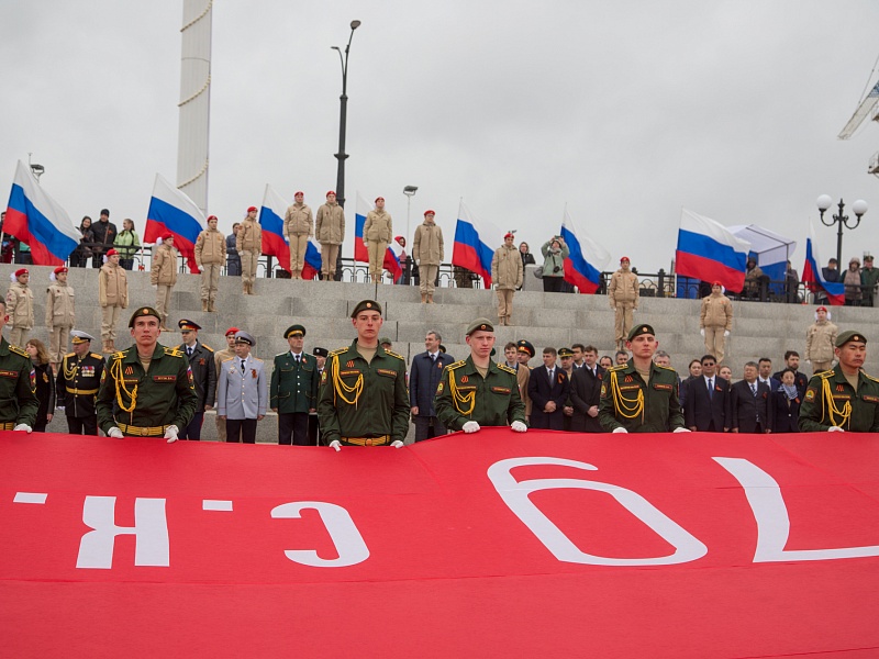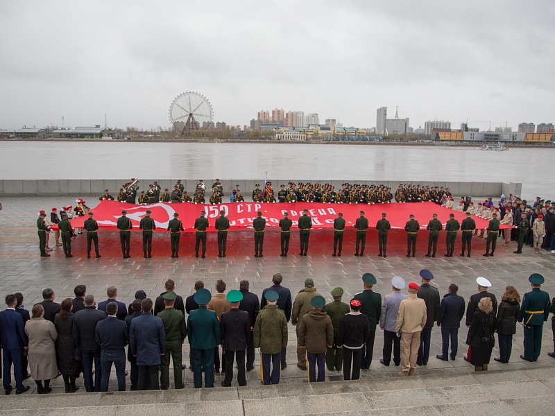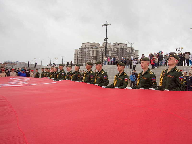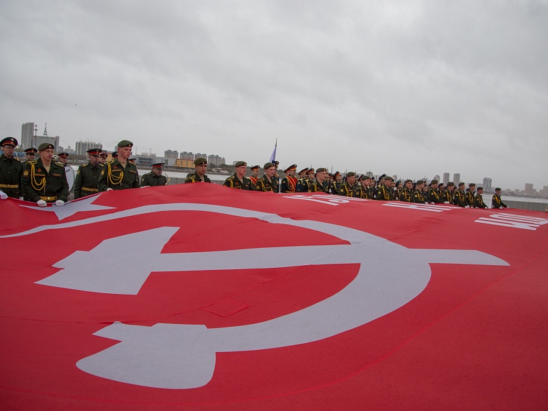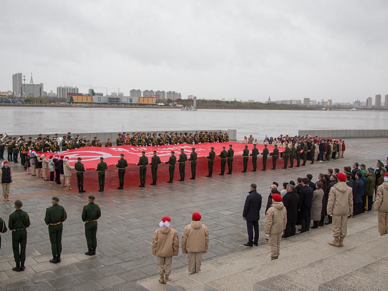 В честь Дня Победы в Благовещенске развернули знамя Победы