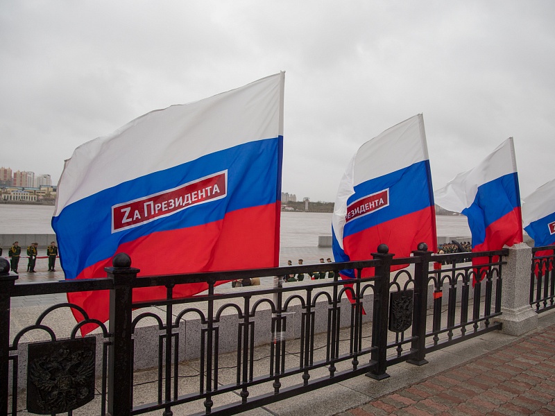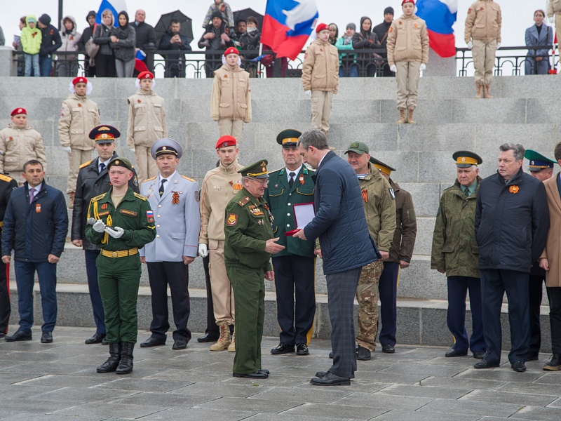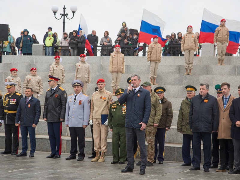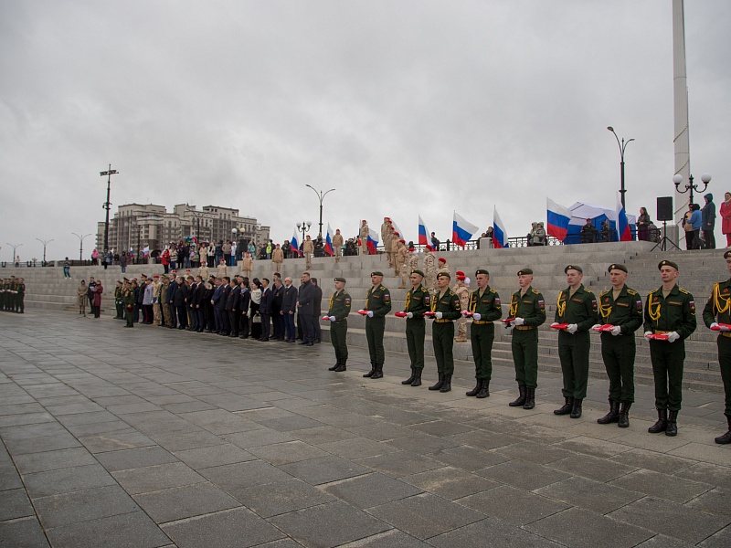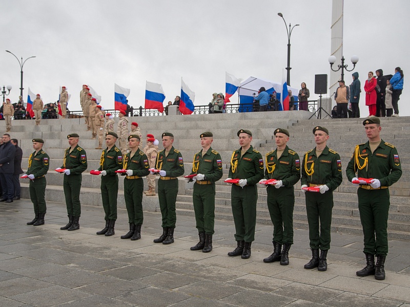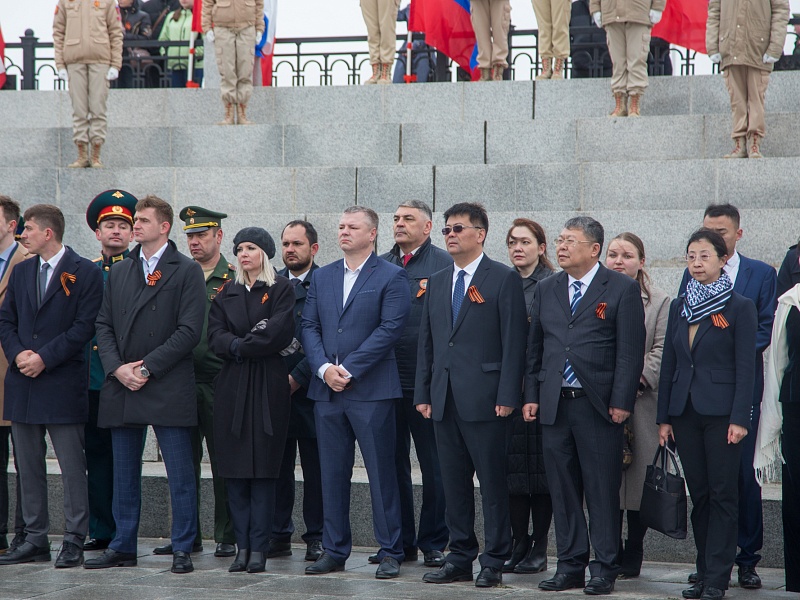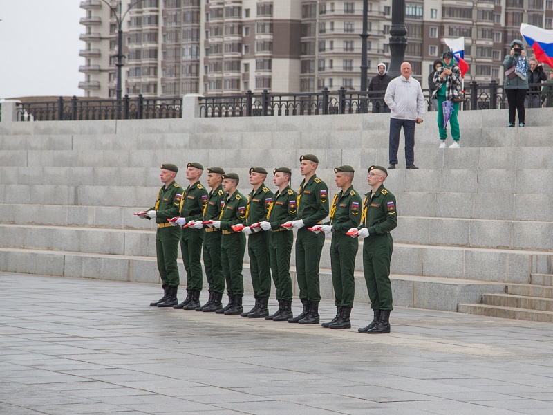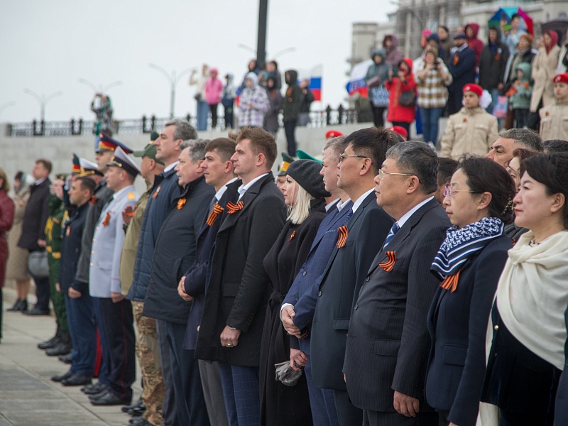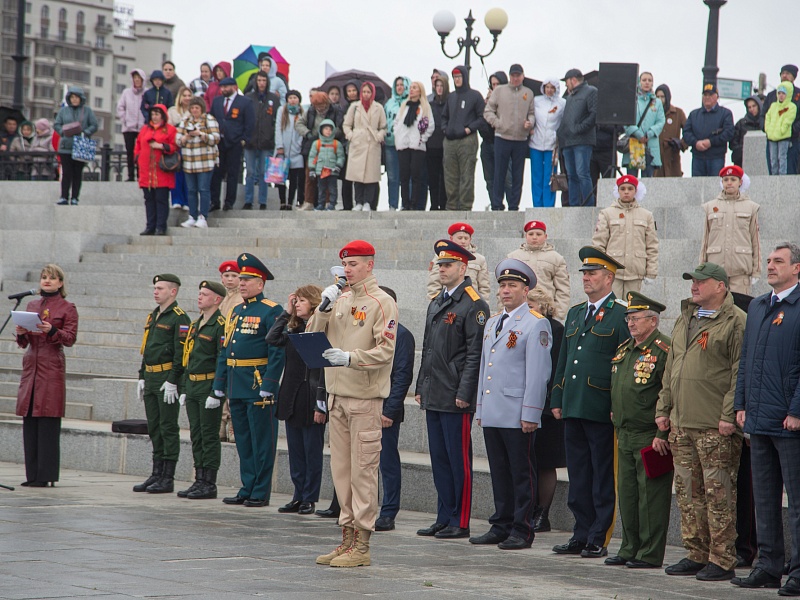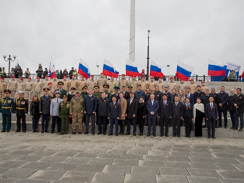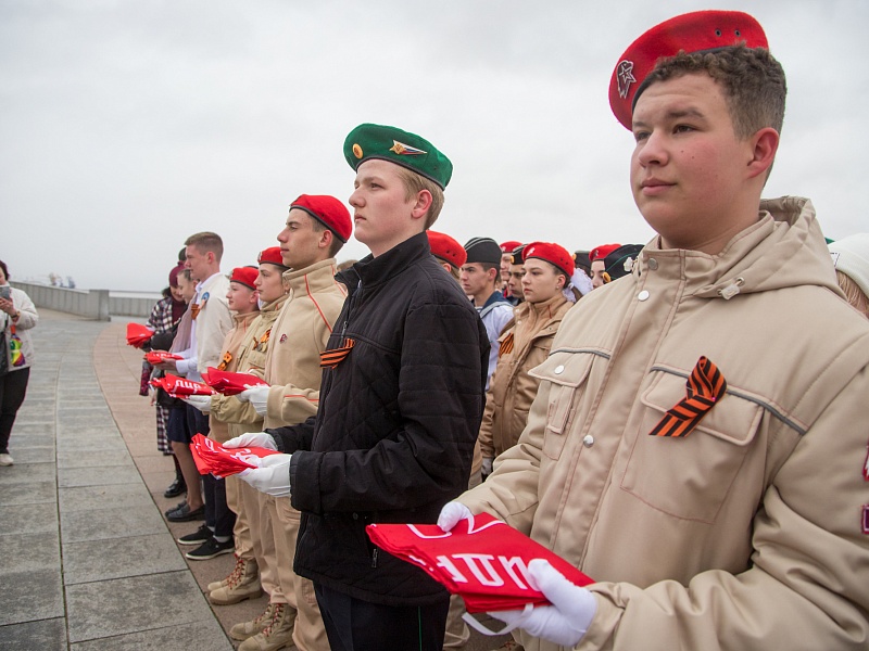 В честь Дня Победы в Благовещенске развернули знамя Победы